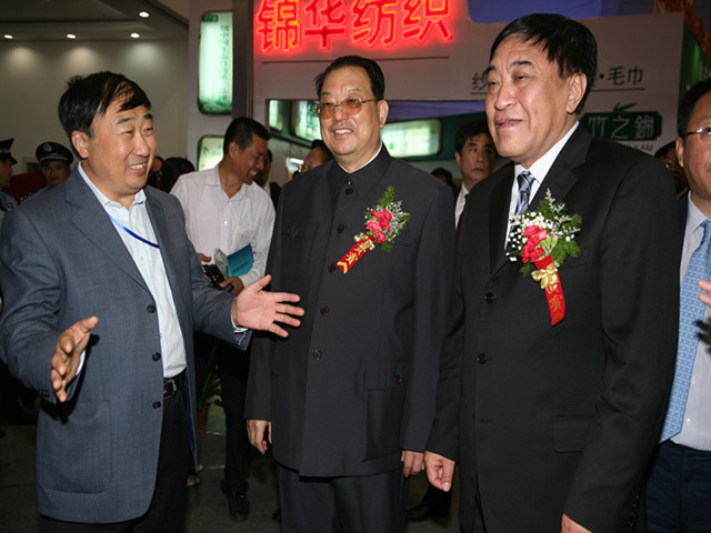 中國紡織工業聯合會原會長王天凱(右一)與公司董事長王力民(左一)親切交談